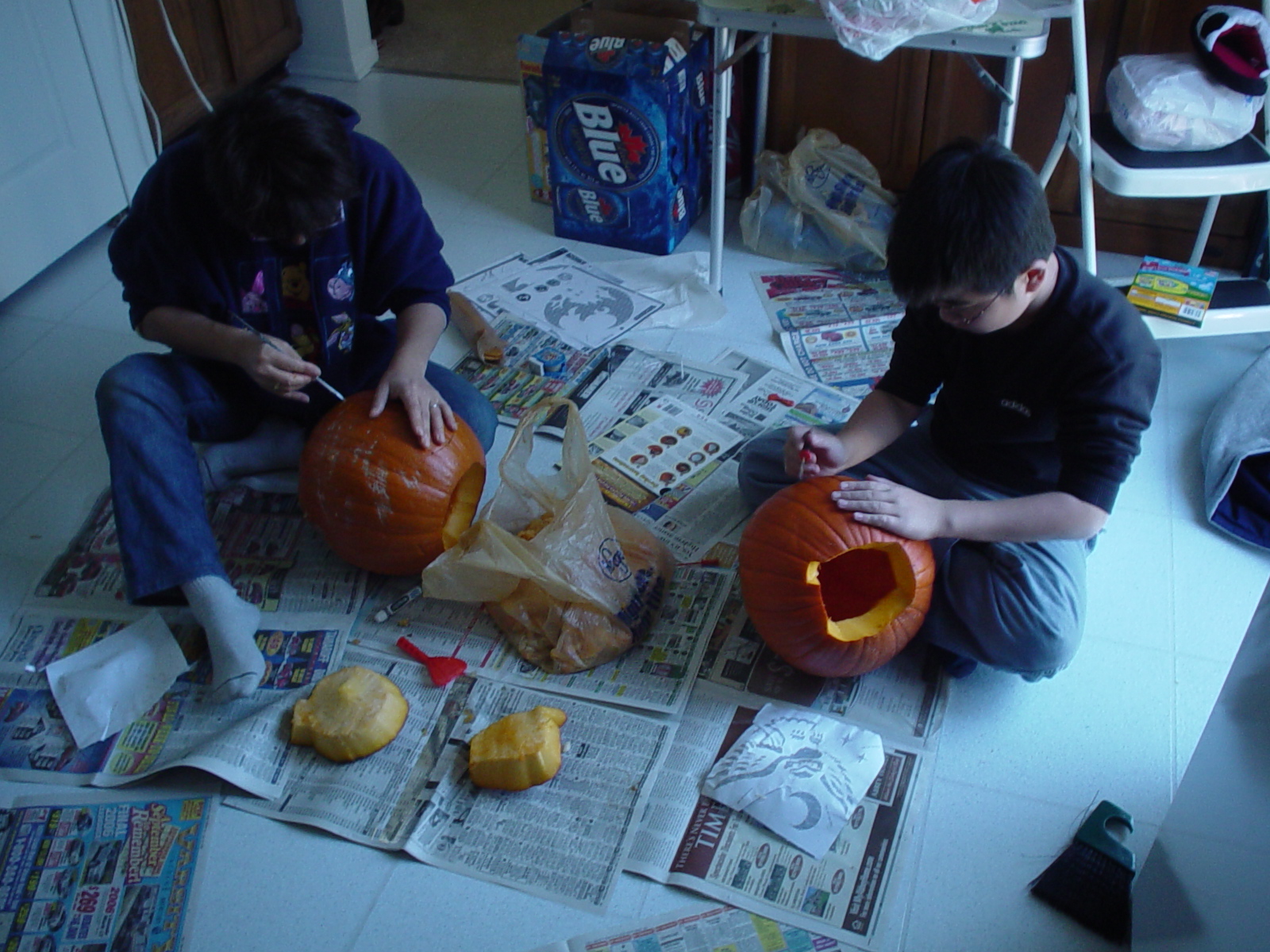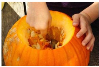 (いちおう生野菜なので一旦カボチャの実をいじってしまうと、ふやけたり最悪腐ったり、提灯を作るのはハロウィン直前の日か当日の朝でないとダメとか言われたな)