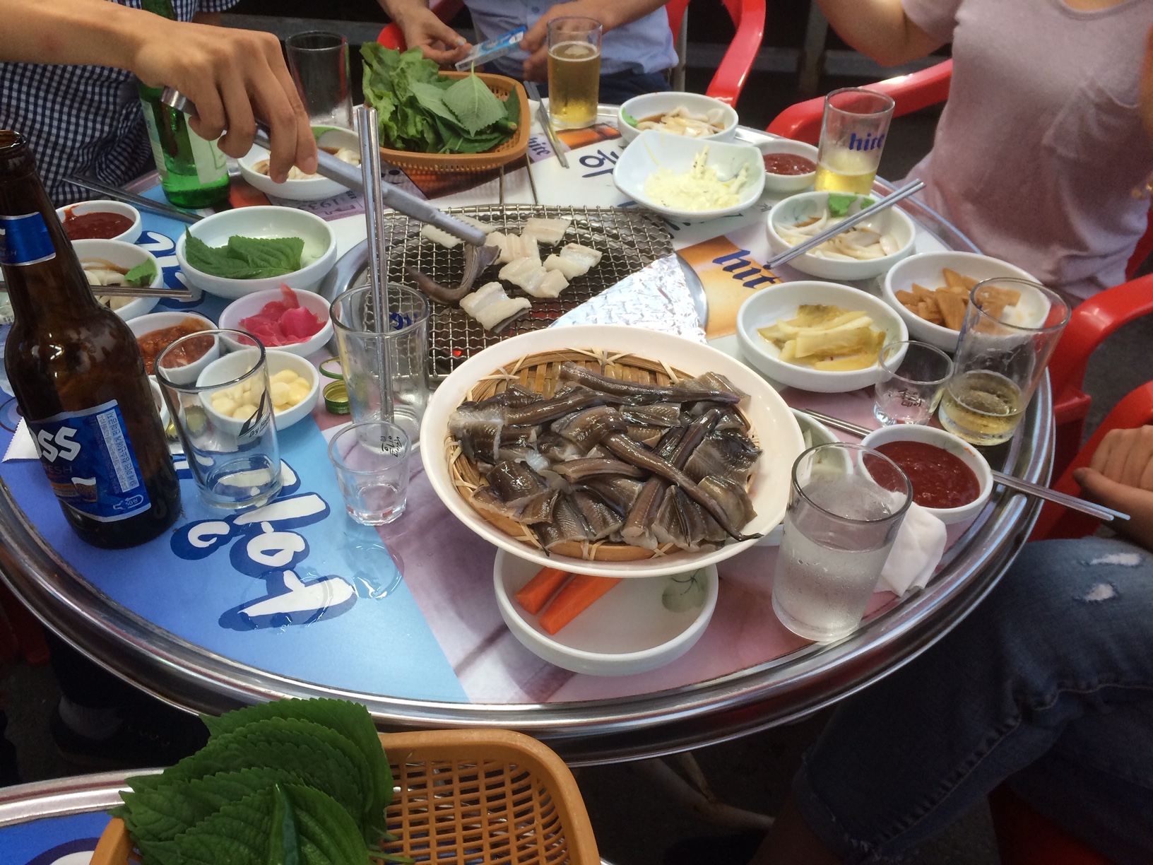 海辺のお店で、あなごの踊り焼き。生きたのをブツ切りして網で焼くの。