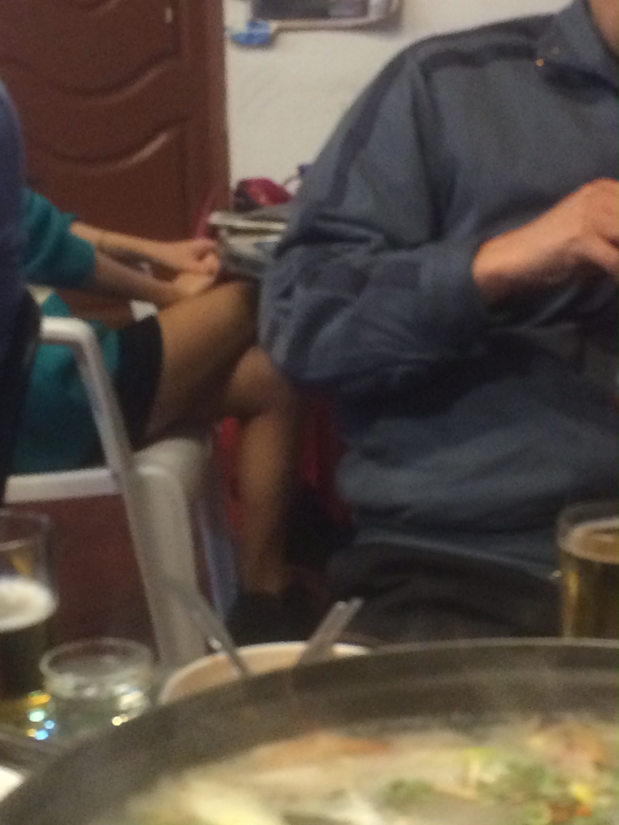 のっけから焼肉屋の女社長との乾杯。焼酎一気飲み!