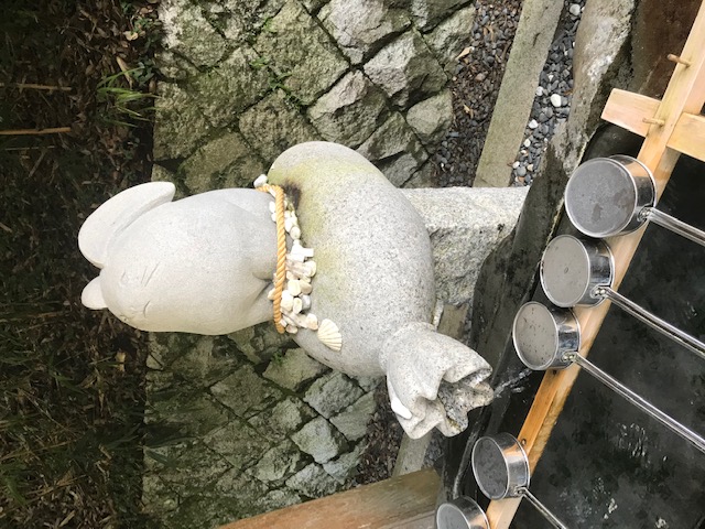 入口のお清め場、ウサギさんのモニュメント、、、苦笑